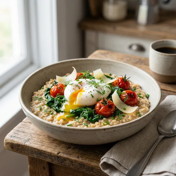 This savory protein oatmeal is the perfect alternative for those who prefer a hearty, non-sweet breakfast packed with muscle-building power. Boasting an impressive 28 grams of protein per serving, it's designed to fuel your morning with sustained energy and aid in muscle recovery, making it ideal for post-workout nourishment or a satisfying mid-day meal. The creamy oats are infused with savory flavors, complemented by melt-in-your-mouth cheese and perfectly cooked eggs, delivering a delightful combination of velvety textures and rich, savory taste that will keep you coming back for more. Its hearty consistency provides a comforting yet protein-rich start to your day, helping you stay full and focused longer. This dish can easily be tailored for gluten-free diets by using certified gluten-free oats, and vegan versions can be created with plant-based cheese and egg substitutes. For best results, cook the oats with a bit of broth instead of water for added flavor, and top with fresh herbs or a sprinkle of chili flakes for an extra kick. Whether enjoyed as a quick breakfast, meal prep option, or post-workout recovery meal, this savory oatmeal is a versatile and nutritious choice that breaks the mold of traditional sweet options. All nutrition data is verified using USDA FoodData Central for accuracy.